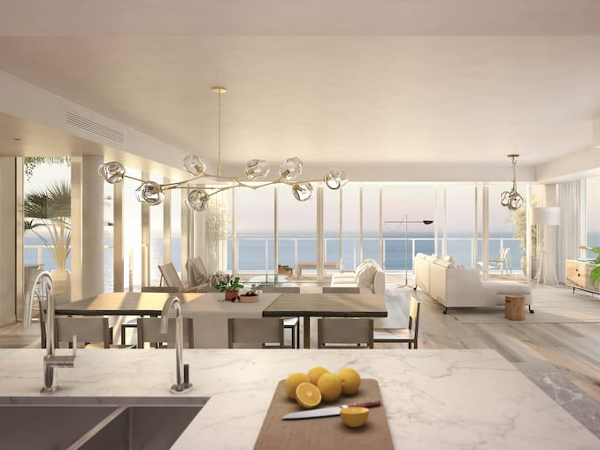 3550 South Ocean offre un accès direct a la plage et une architecture étudiée de manière a offrir des vues maritimes a chaque unité d’habitation.